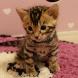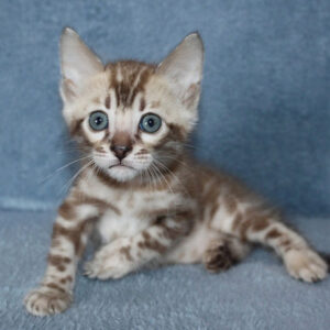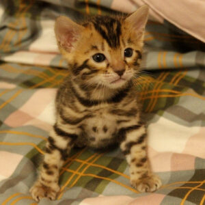 Though energetic, Bengals are also gentle and loving, making them great with children and other pets. With proper care and enrichment, they grow into confident, beautiful cats full of personality. If you want a kitten that is striking, interactive, and endlessly fun, the Bengal is a perfect choice.